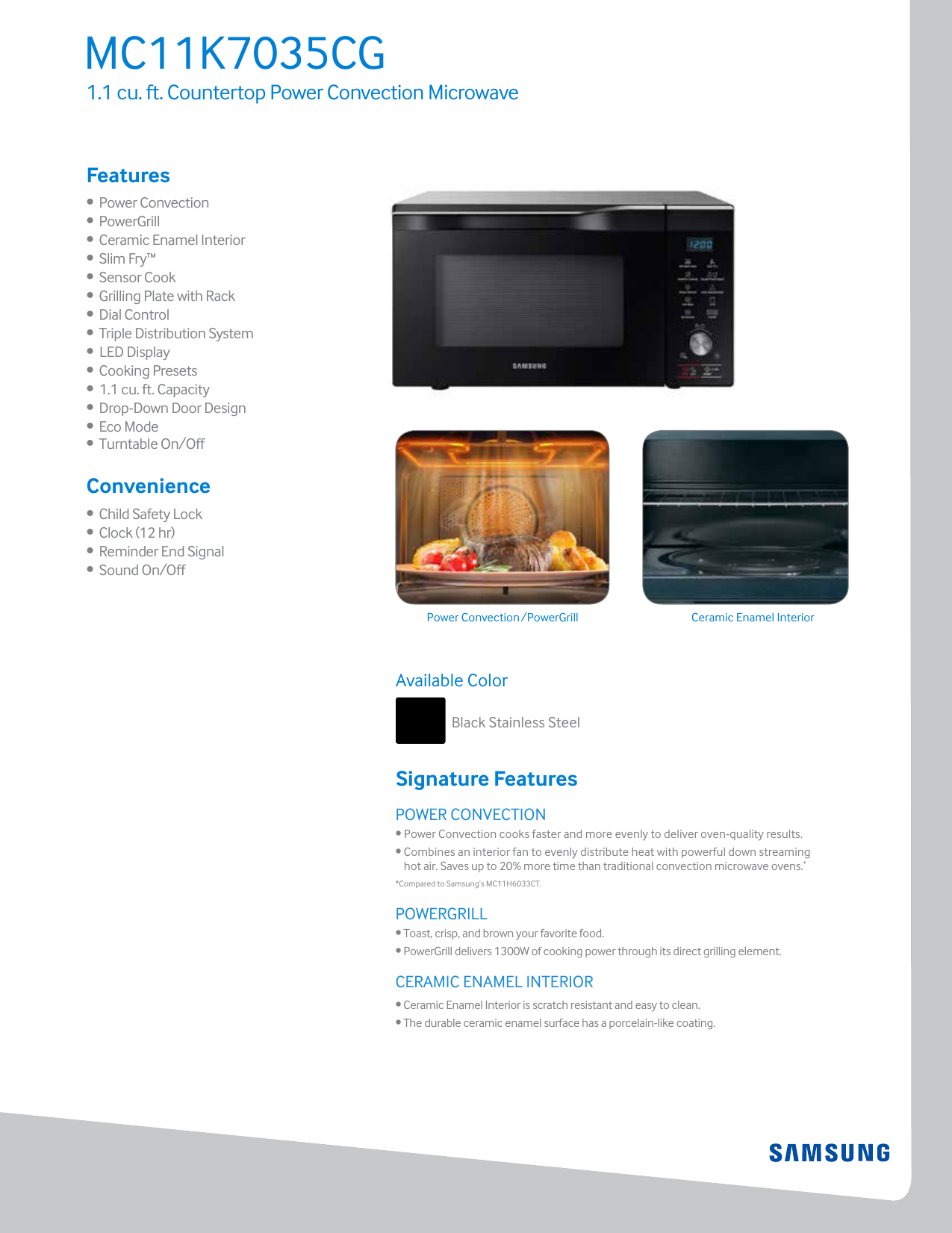 This Samsung over-the-range microwave offers the option to disable the turntable for the ability to utilize the entire interior space to accommodate larger square-shaped dishes. Udostpnij na Facebooku Tweetnij na Twitterze Tweetnij na Twitterze. Summary of Contents of user manual for Samsung MC17J8000CS.